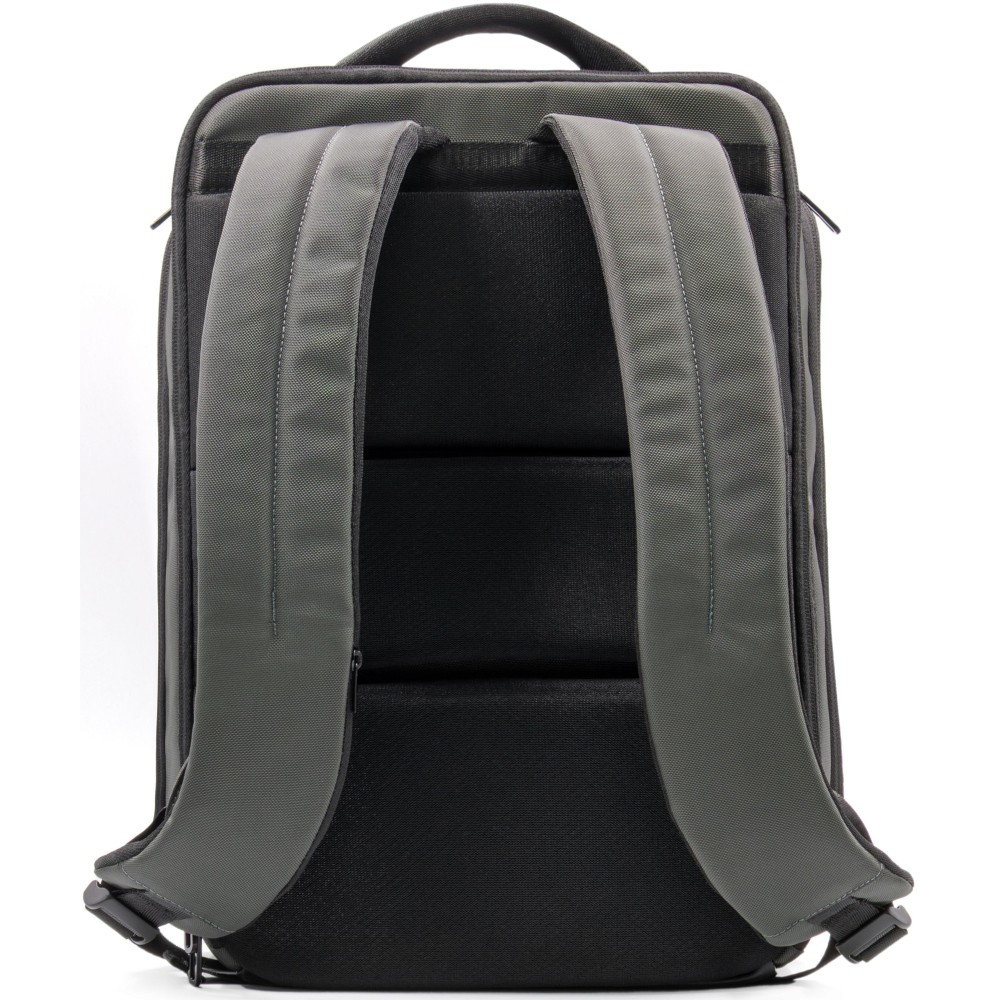 800D hátizsák víz- és szennyeződéslepergető újrahasznosított, nagy kopásállóságú, ballisztikus szövetből, vegán bőr elemekkel. 22 literes űrtartalommal rendelkezik, párnázott rekesszel legfeljebb 16 hüvelykes laptophoz. Hátsó lopásgátló rekesszel, integrált szemüvegtartó rekesszel, két oldalsó tárolóval és bőröndre rögzíthető pánttal kialakítva. Puha tapintású, szellőző hátpárnázással ellátva, mindennapi használatra vagy utazáshoz alkalmas.